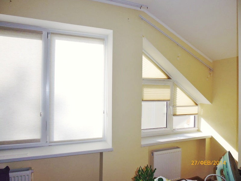 Шторы в Ирпене в квартире с нестандартными окнами.